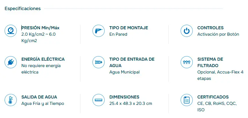 • Fácil Mantenimiento. Diseñado para limpiarse con rapidez, asegurando un suministro constante de agua segura y confiable.